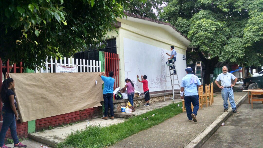 Se buscó el apoyo de la escuela primaria de Matías Romero, la cual ofreció un muro en el exterior del edificio, en una calle céntrica, muy transitada, junto a un mercado.