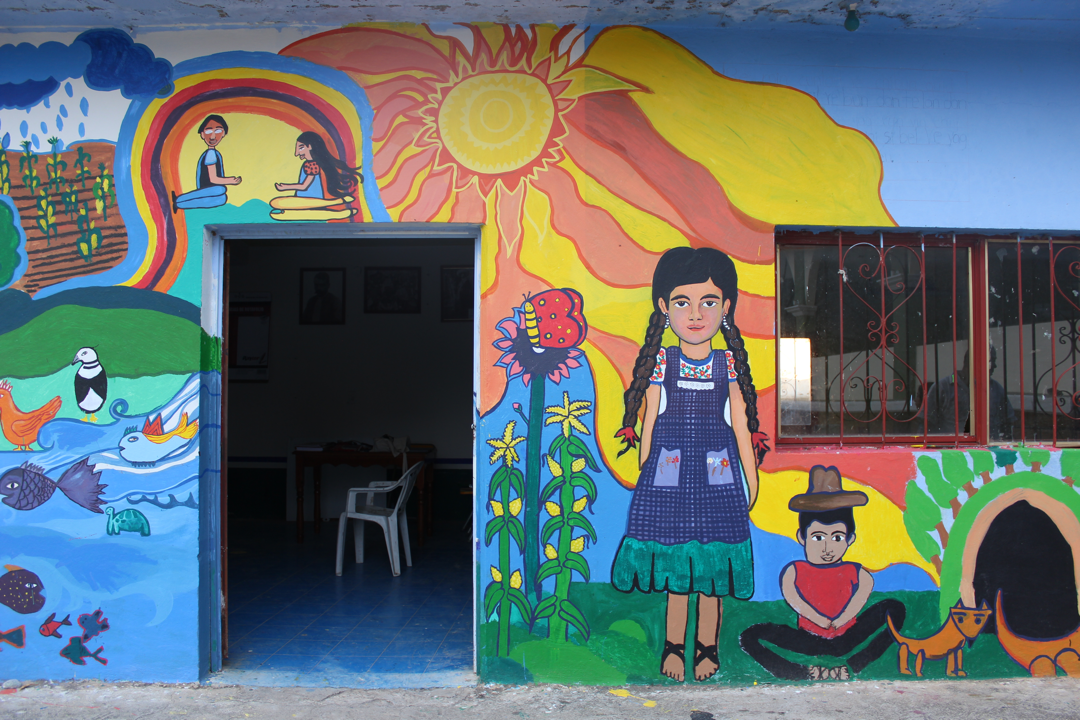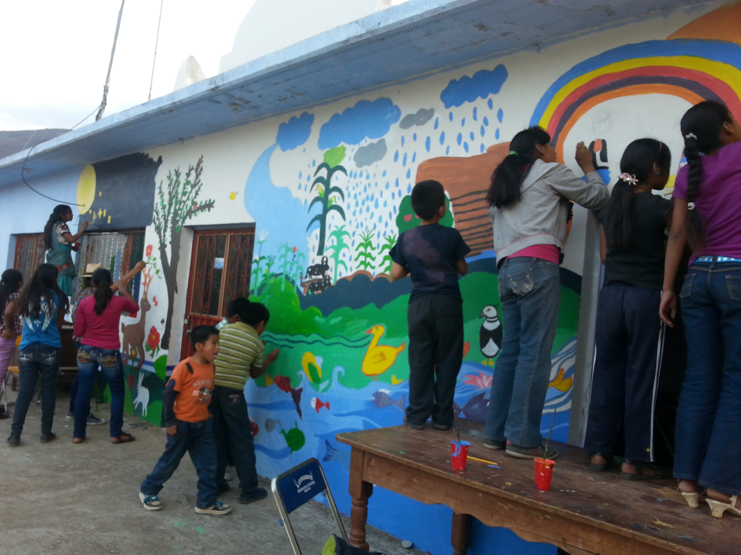La propuesta original surgió en colaboración con Andrea Searle, muralista que había desarrollado la metodología en talleres previos con comunidades zapatistas de Chiapas. En nuestro caso los adoptamos como una actividad de nuestro trabajo con los Espacios de Comunicación Comunitaria que impulsábamos con organizaciones comunitarias de Capulalpan de Méndez, en la Sierra Juárez, Santo Domingo Petapa, en el Istmo y Cuetzalan, en la Sierra Norte de Puebla. Siendo así como surgieron los 3 primeros murales que impulsamos.