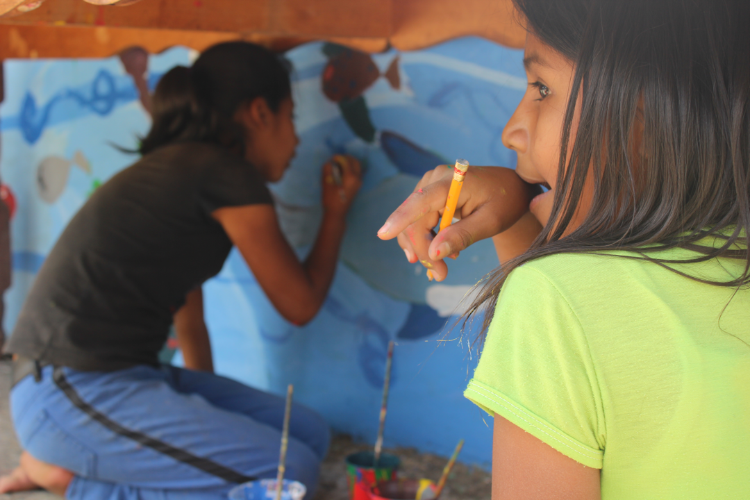 Había quienes al pasar preguntaban, y de pronto se ponía a pintar también. Les ofrecíamos una brocha, una breve explicación, y dejábamos que aportaran su tiempo e inspiración. Así niñas, niños, madres, padres, comerciantes y traseúntes participaron en la elaboración de los murales.